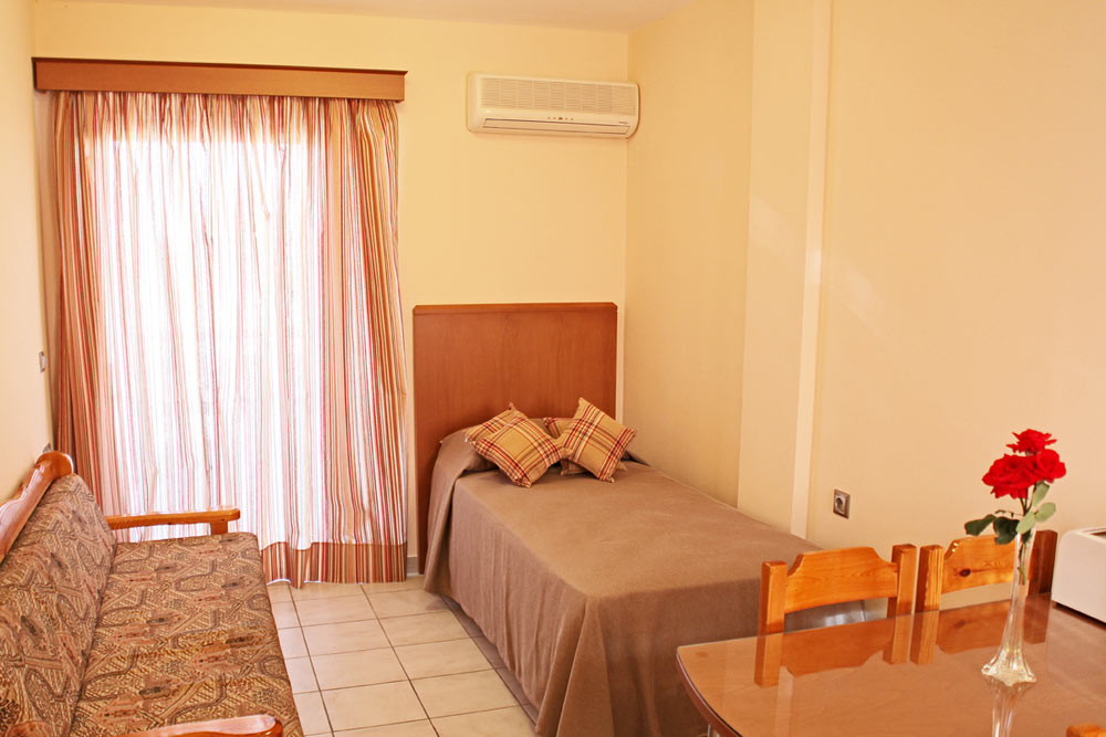Tastefully decorated, spacious air-conditioned apartment, with a fully equipped kitchenette. It has a private bathroom and a private balcony overlooking the pool and the gardens.